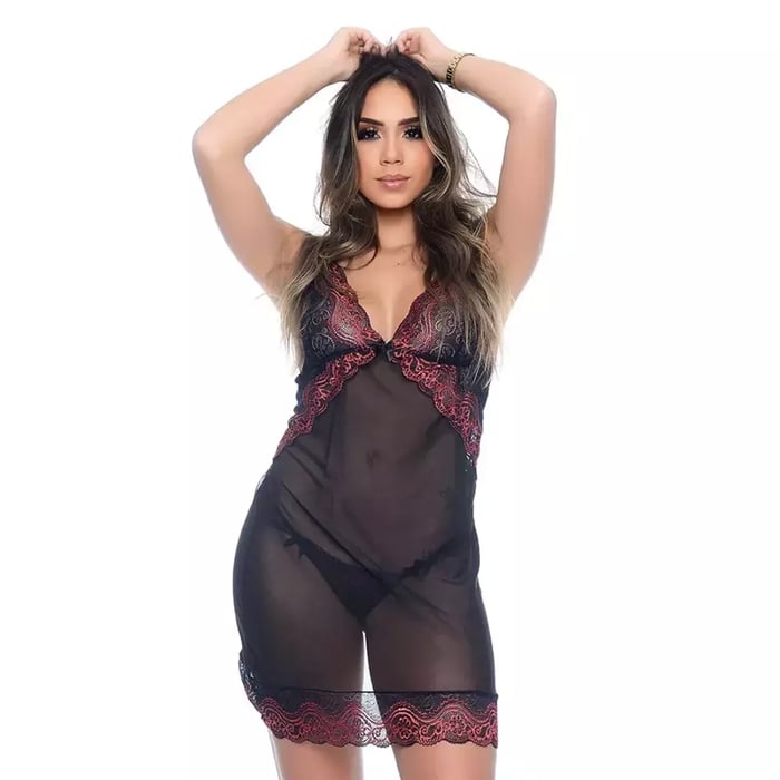 Camisola confecciona em tule com detalhes em renda e abertura no "bumbum".Confeccionado em tule sua transparência deixa ousadia no ar, os detalhes em renda traz um toque de romantismo com delicadeza, a parte mais especial dessa lingerie, está na parte de trás, com abertura no bumbum ela permite que você traga a sua personalidade mais safada a tona, deixando seus desejos mais secretos transparecer, e seu parceiro (a) enlouquecer.>>> Obs.: NÃO ACOMPANHA CALCINHA!!! <<<Modo de lavar: Lave sempre a mão, de forma delicada. Use sabão de sua preferência, enxague em água corrente e repita o processo quantas vezes forem necessárias, sem aplicar força e não usar cloro. Seque à sombra.Imagens meramente ilustrativas. Cores, rendas e aviamentos podem variar de acordo com o lote de fabricação.